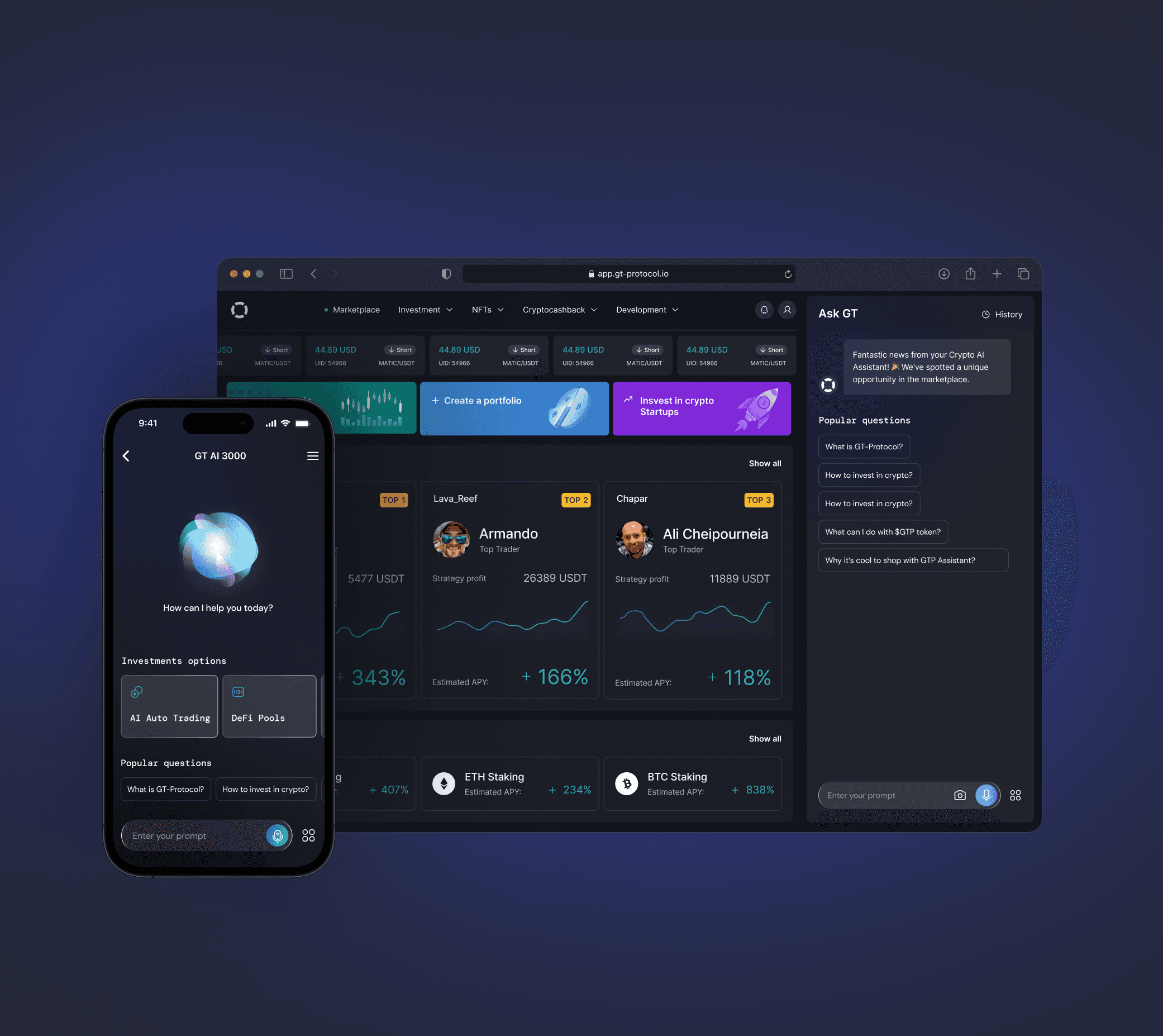 The project for GT-Protocol was not just about design; it was about building a brand and a product from the ground up, and shaping it into a platform that stands out in the competitive world of cryptocurrency investments.