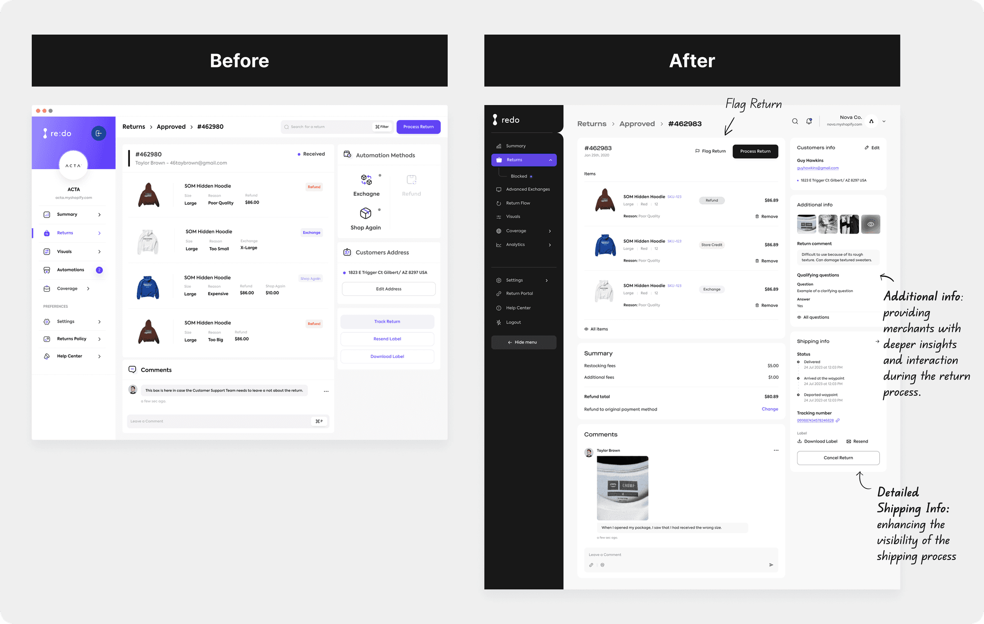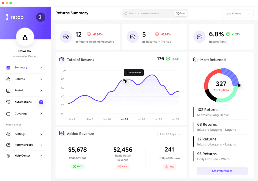 Redo, a platform transforming e-commerce returns into a profit center by offering free, automated returns, reducing refund rates and return costs.