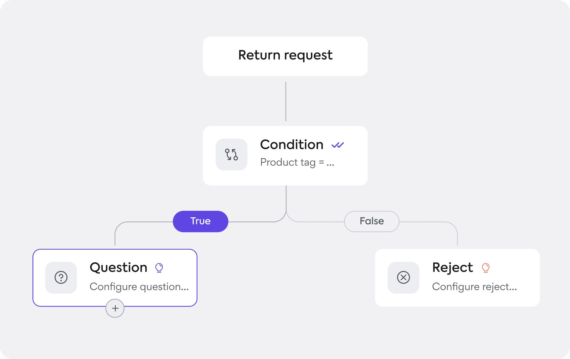 This new feature allows merchants to create and manage return rules tailored to specific scenarios. Merchants can start by selecting from predefined workflow templates, such as ”Question” to gather customer input.